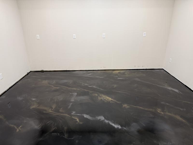 The first step in applying an excellent concrete floor coating is grinding the floor to create a flat, smooth surface free from dirt and grime. The Xtreme Coatings team utilizes top-of-the-line equipment that virtually eliminates the dust that grinding can create. Next, we’ll repair any cracks or holes in the floor before priming the epoxy. Finally, we add the flakes to the floor.